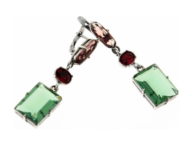Серьги с гальваническим покрытием серебра. Вставка Сваровски кристалл