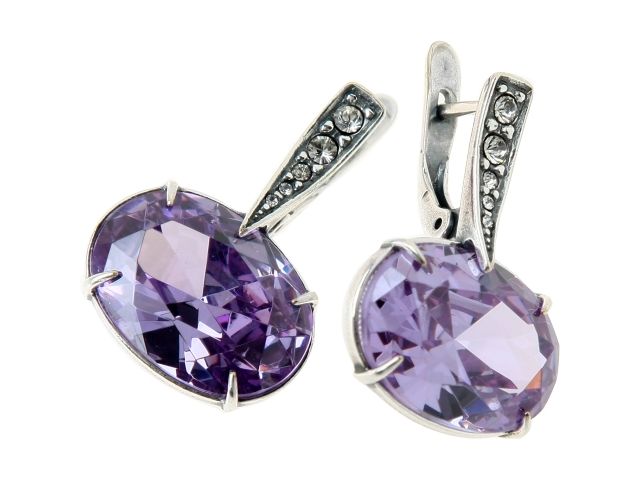Серьги с гальваническим покрытием серебра. Вставка Сваровски